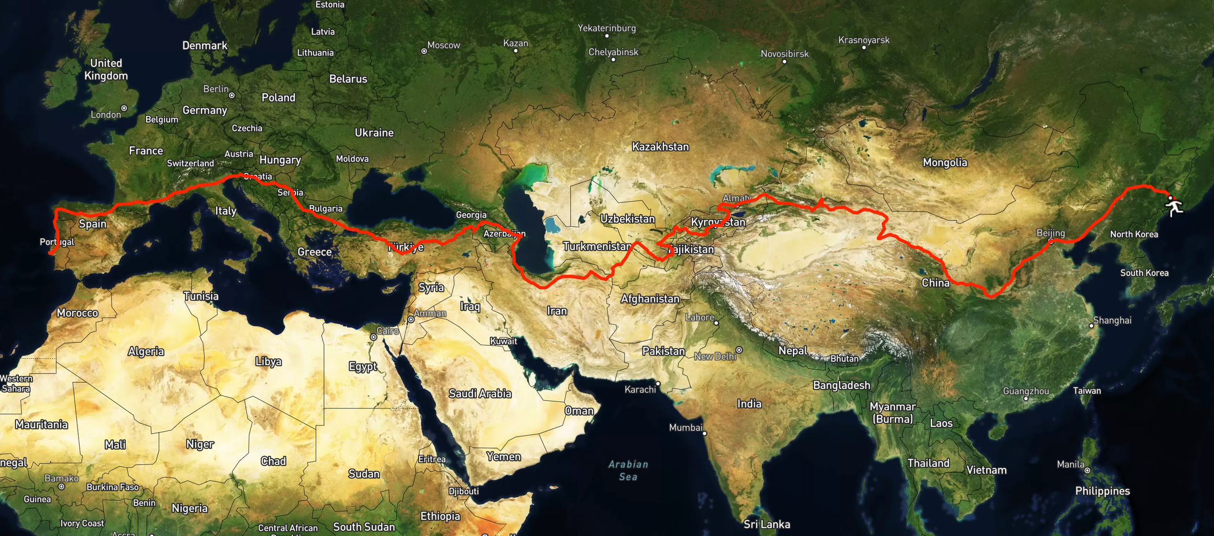 By the end of the 15-month journey, her own feet will have taken her 20,000km across Eurasia. She will become the first person to complete this feat.